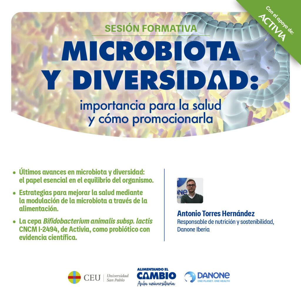 Antonio Torres Hernández, responsable de Nutrición y Sostenibilidad de Danone Iberia, presentó el webinar  “Microbiota y diversidad” los avances sobre el papel de la microbiota en la salud y cómo los alimentos fermentados ayudan a mantener su equilibrio y favorecer el bienestar digestivo.